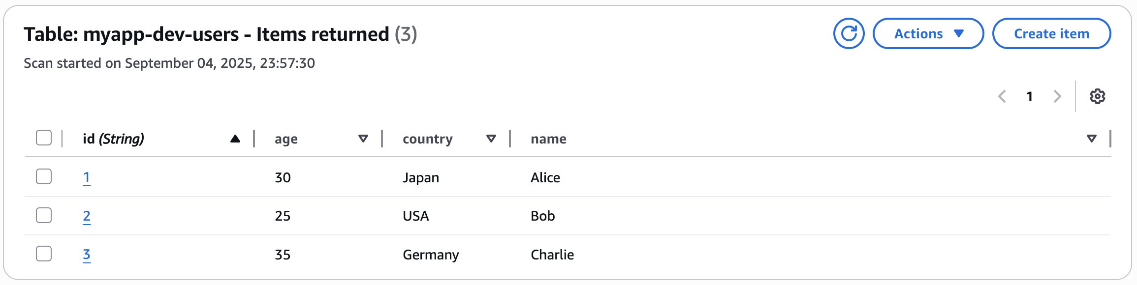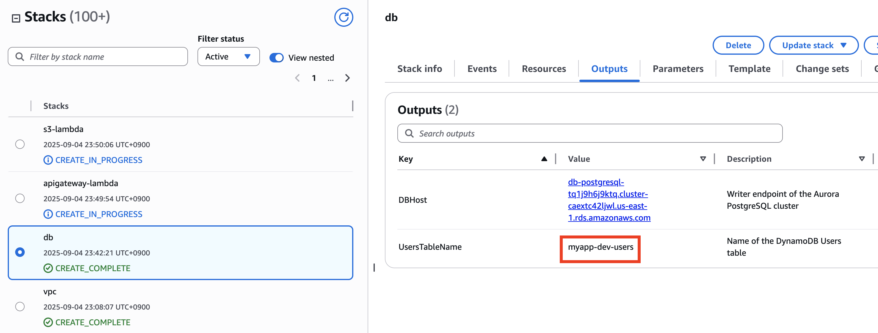 [ec2-user ~]aws s3 cp ./src/sample_users.csv s3://myapp-dev-<Account ID>-upload-csv