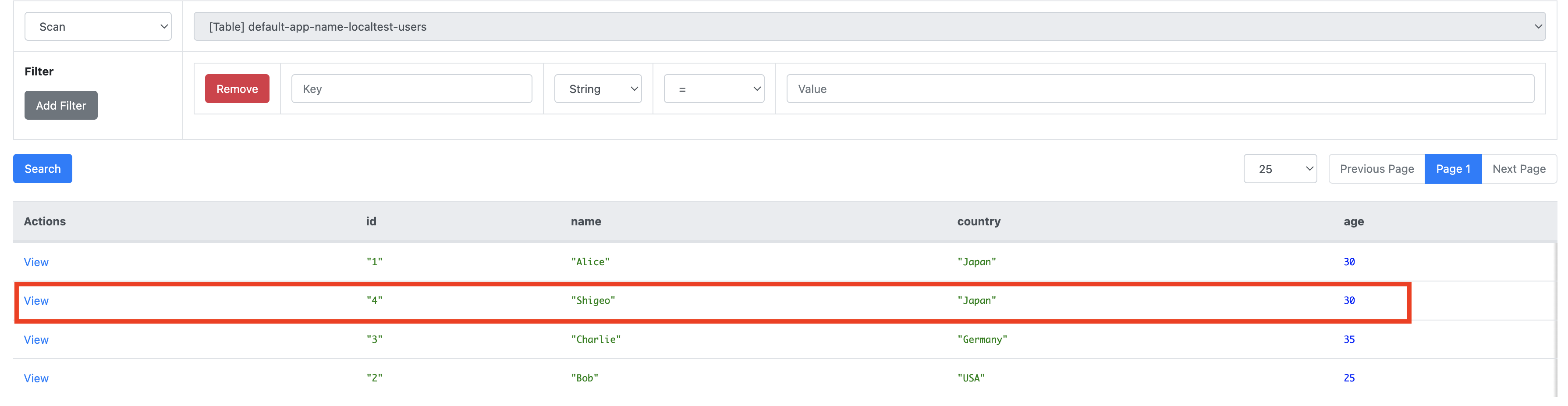 generates events when Lambda is triggered, enabling local execution. When you run the script, you can see that the contents of sample_users.csv have been generated in the DB.