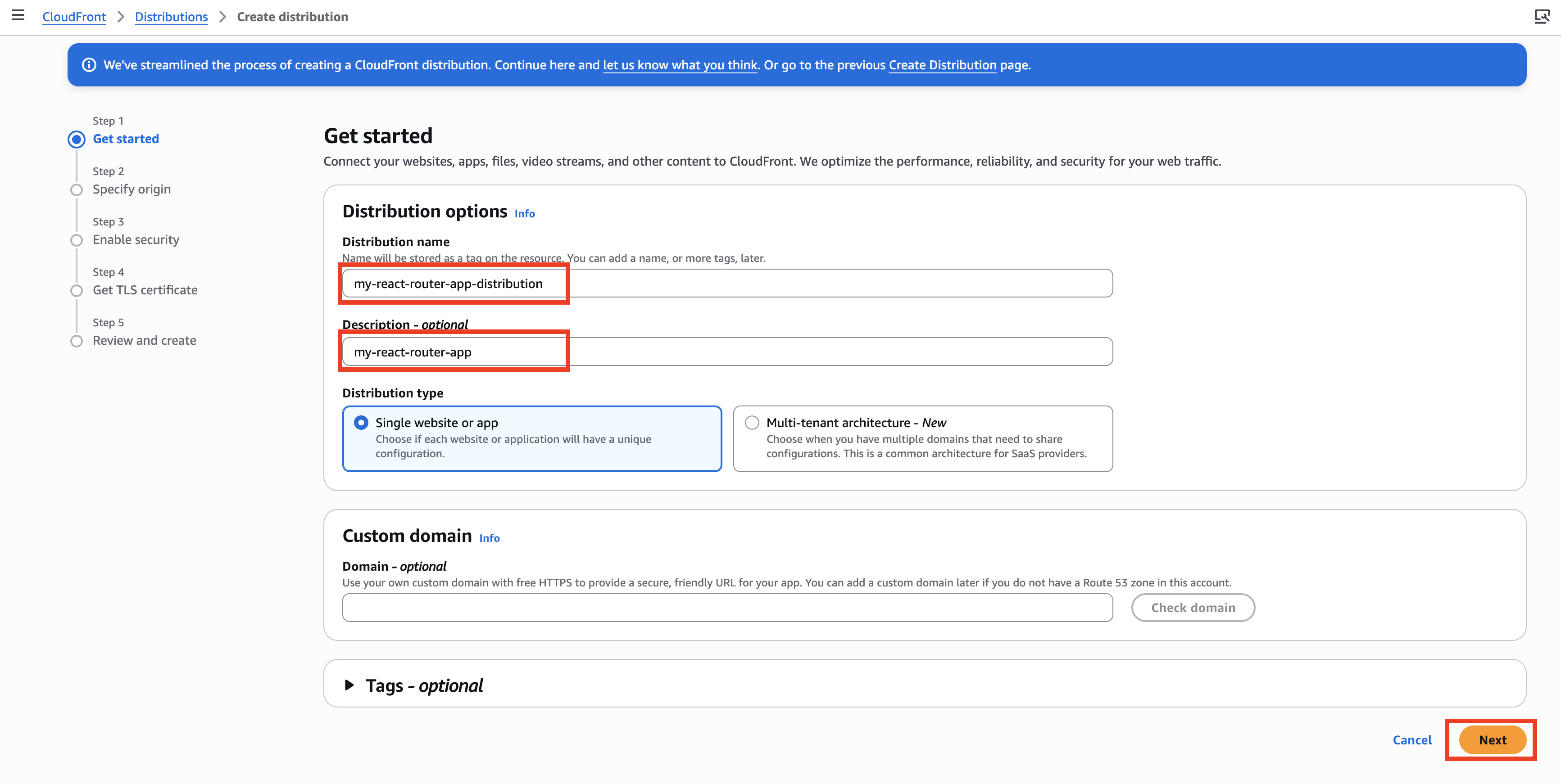 Once you've configured everything up to this point, CloudFront deployment will occur in a few minutes. After confirming the completion display, open the domain issued by CloudFront.