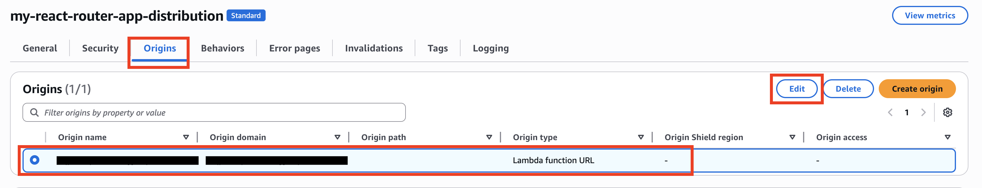 再度、今作成したディストリビューションを選択してOriginタブを選択、Originsのラジオボタンを選択してEditをクリックします